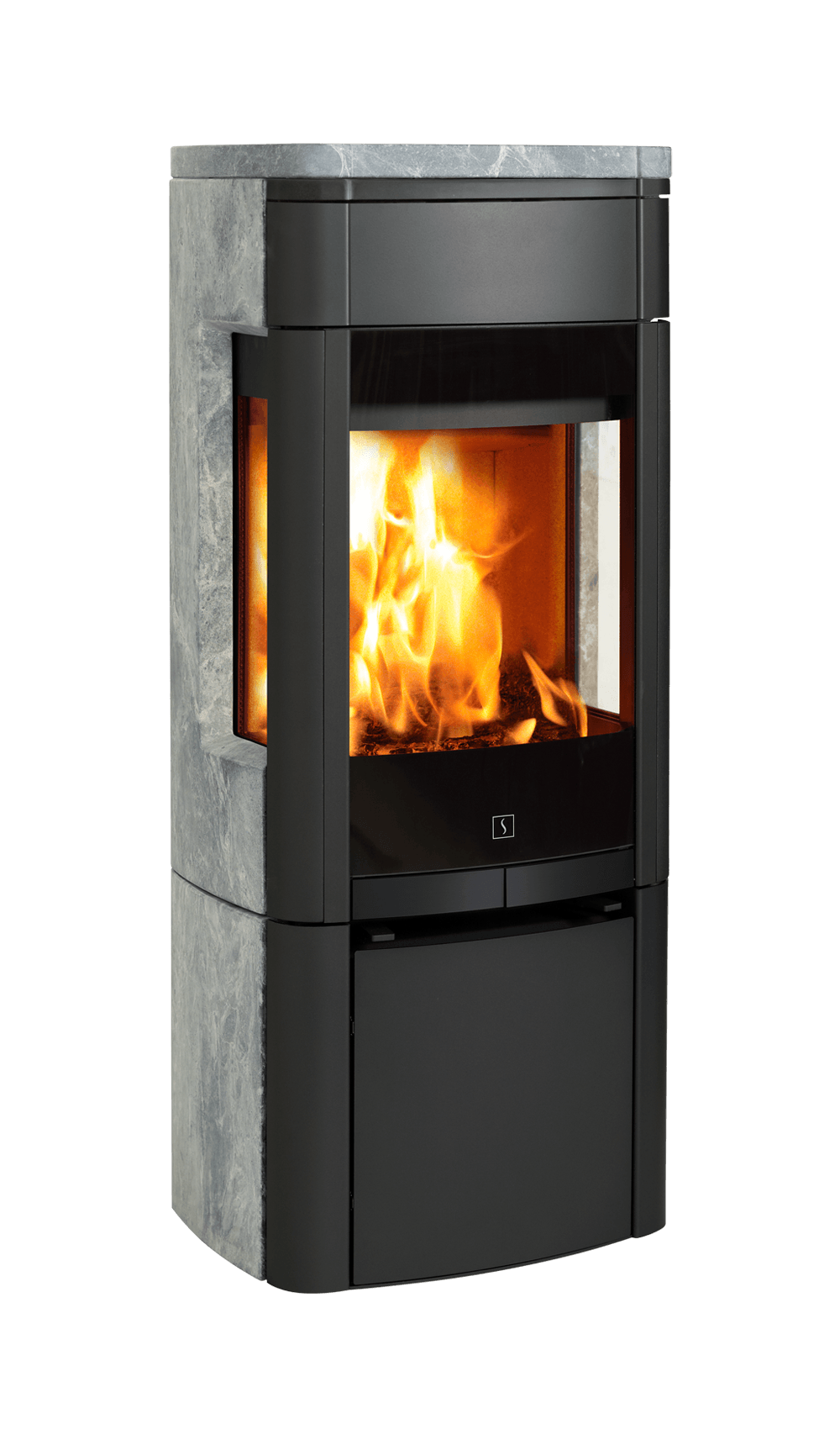 Scanspis 65 är en mellanstor kamin med glaslucka som ger en perfekt insyn till lågorna. Med integrerad täljsten på sidorna, som gör att den behaller det rena uttrycket.