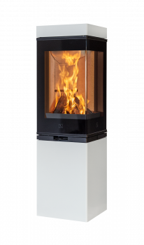 Kaminen passar perfekt för hörninstallation.