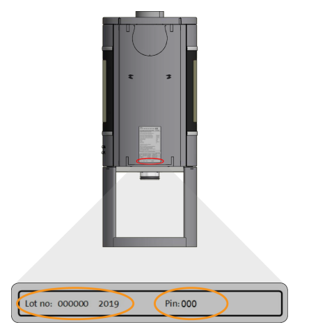 Alla Scanspis braskaminer är försedda med ett produktregistreringsnummer, detta hittar du på typskylten på kaminens baksida. Vänligen notera detta nummer så att det enkelt kan användas vid kontakt. Serienummret alltid ska uppges vid kontakt med återförsäljare eller Scan A/S.